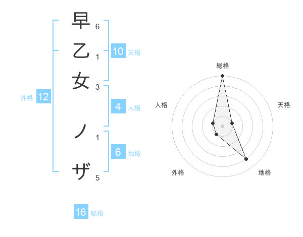 早乙女 ノザさんを姓名の画数から五運を鑑定