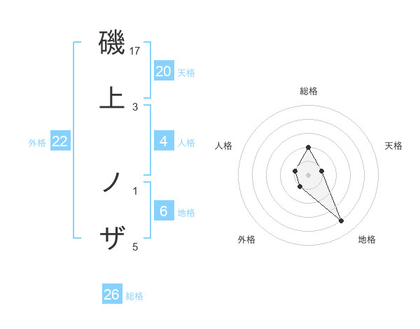 磯上 ノザさんを姓名の画数から五運を鑑定