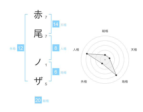 赤尾 ノザさんの総格は20画の1点!