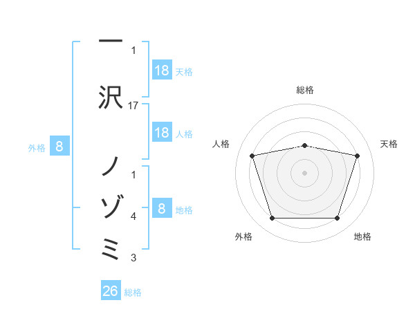 一沢 ノゾミさんの天格は18画の4点