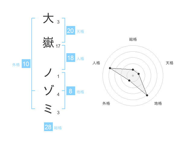 大嶽 ノゾミさんを姓名の画数から五運を鑑定