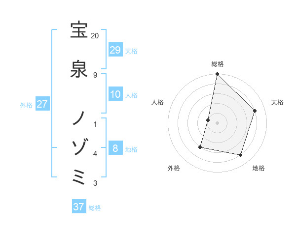 宝泉 ノゾミさんを姓名の画数から五運を鑑定