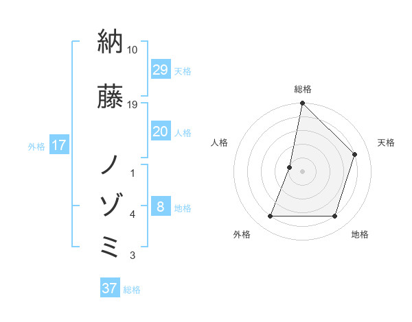 納藤 ノゾミさんの総格は37画の5点!