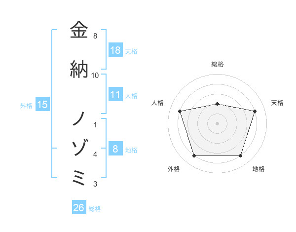 金納 ノゾミさんの外格は15画の4点!