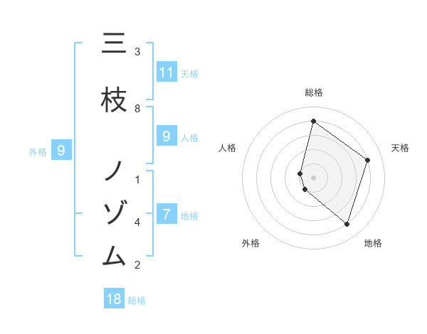 三枝 ノゾムさんを姓名の画数から五運を鑑定