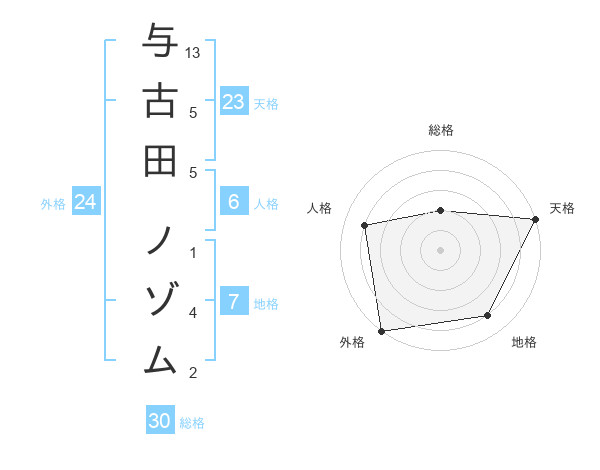 与古田 ノゾムさんの外格は24画の5点!