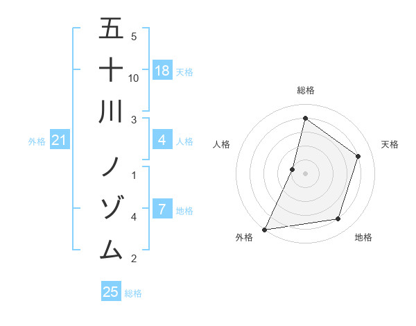五十川 ノゾムさんの外格は21画の5点!