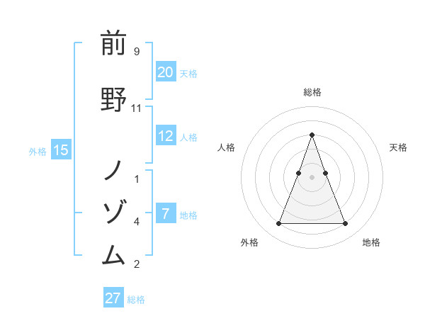 前野 ノゾムさんを姓名の画数から五運を鑑定