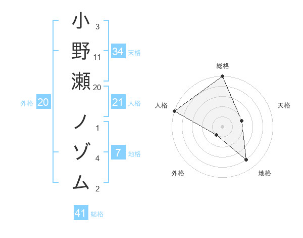小野瀬 ノゾムさんを姓名の画数から五運を鑑定