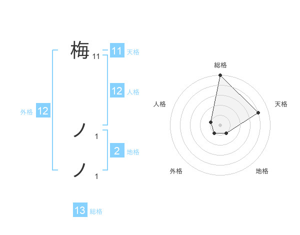 梅 ノノさんの総格は13画の5点!