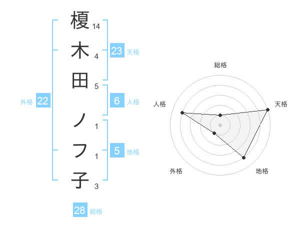 榎木田 ノフ子さんを姓名の画数から五運を鑑定