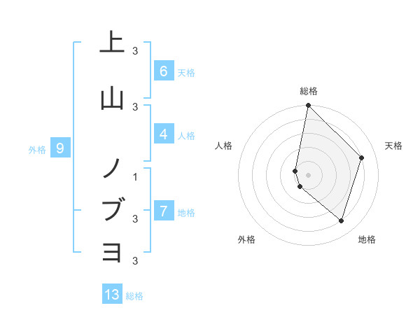 上山 ノブヨさんの総格は13画の5点!