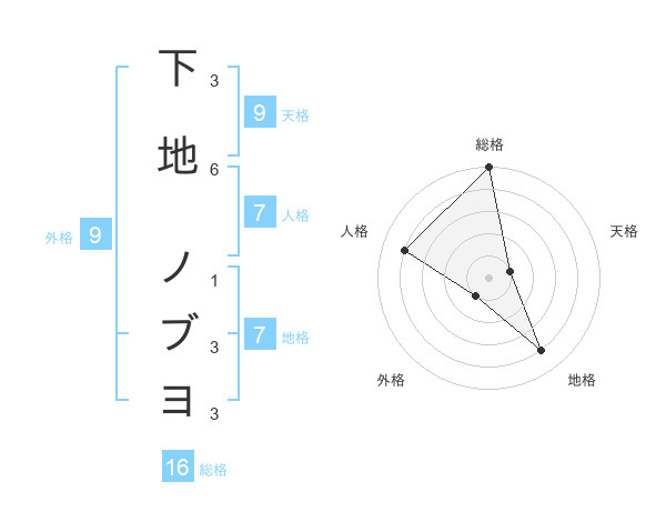 下地 ノブヨさんの総格は16画の5点!