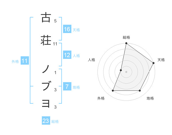 古荘 ノブヨさんを姓名の画数から五運を鑑定