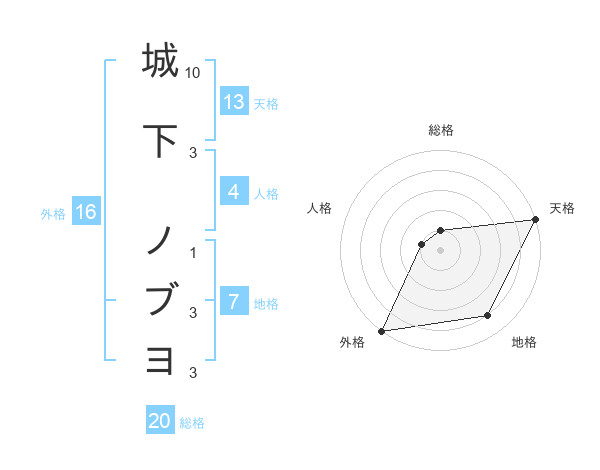 城下 ノブヨさんの天格は13画の5点!