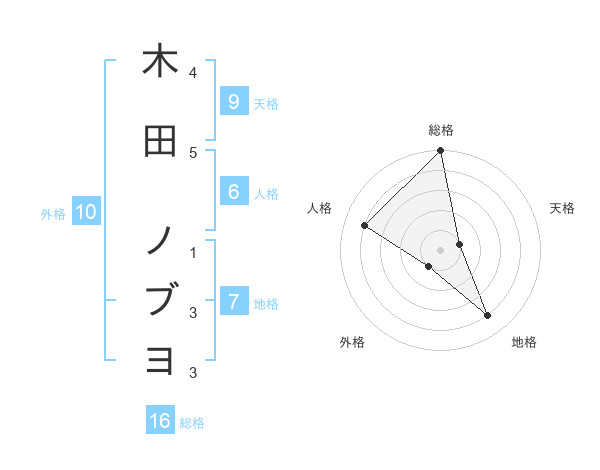 木田 ノブヨさんを姓名の画数から五運を鑑定