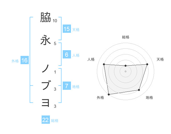 脇永 ノブヨさんの外格は16画の5点!