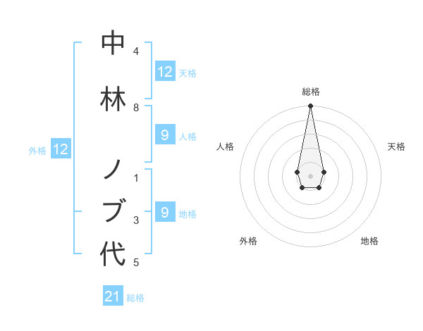 中林 ノブ代さんを姓名の画数から五運を鑑定