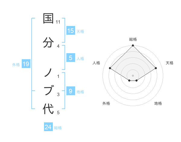 国分 ノブ代さんを姓名の画数から五運を鑑定