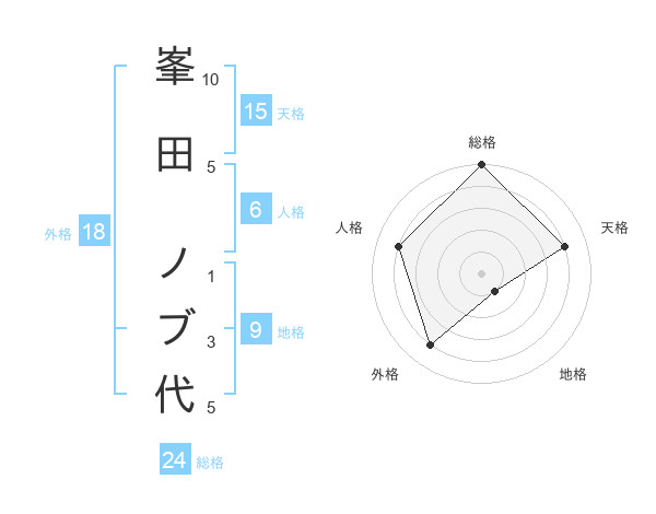 峯田 ノブ代さんを姓名の画数から五運を鑑定
