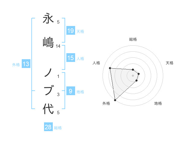永嶋 ノブ代さんを姓名の画数から五運を鑑定