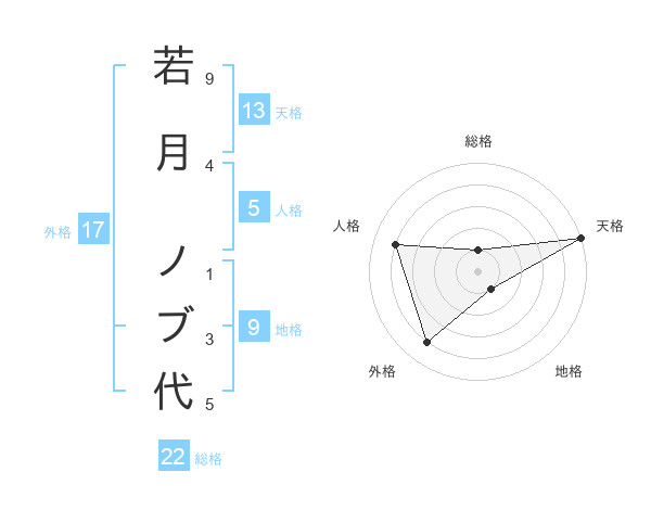 若月 ノブ代さんを姓名の画数から五運を鑑定