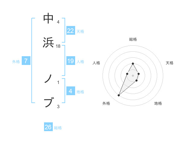 中浜 ノブさんを姓名の画数から五運を鑑定