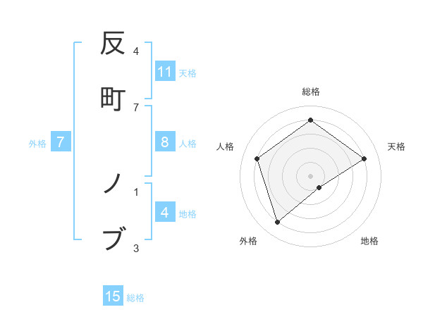 反町 ノブさんの総格は15画の4点!