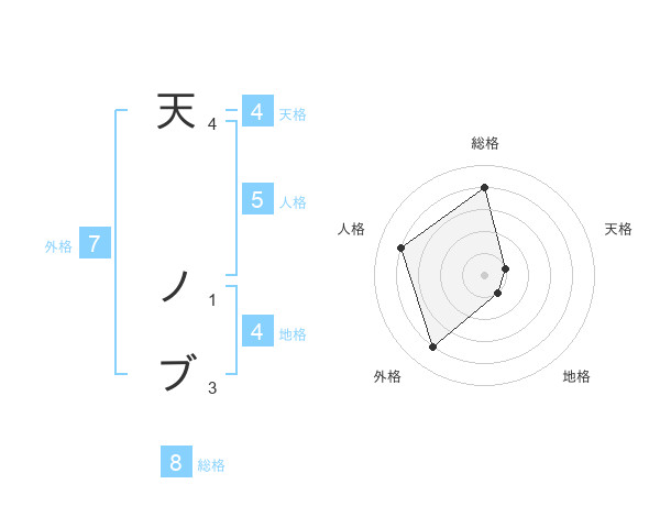 天 ノブさんの総格は8画の4点!