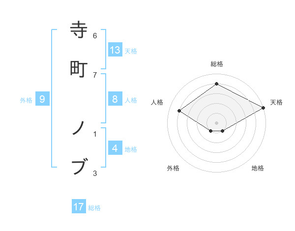 寺町 ノブさんを姓名の画数から五運を鑑定