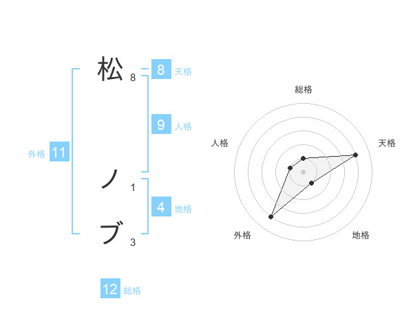 松 ノブさんの天格は8画の4点!