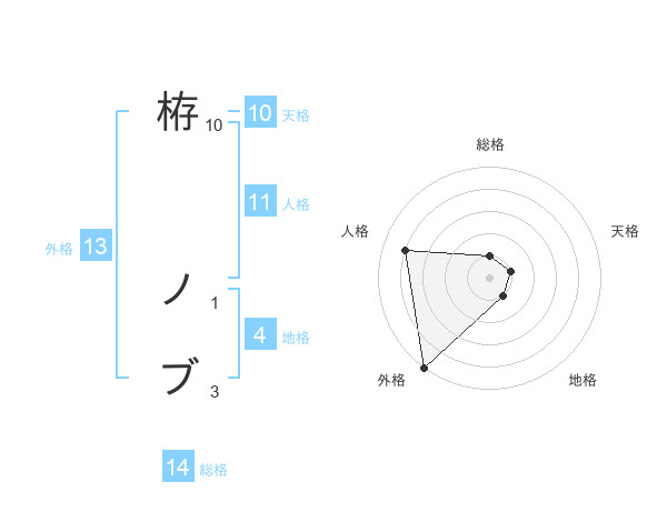 栫 ノブさんの外格は13画の5点!