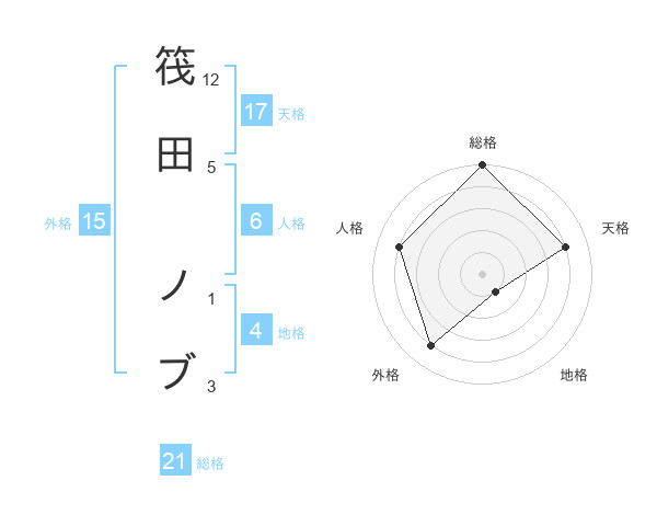 筏田 ノブさんを姓名の画数から五運を鑑定