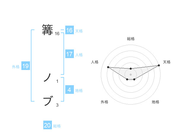 篝 ノブさんの天格は16画の5点!