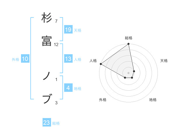 杉富 ノブさんを姓名の画数から五運を鑑定
