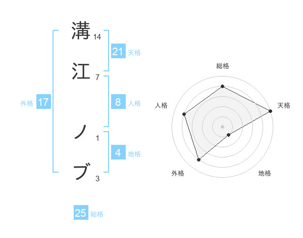 溝江 ノブさんの天格は21画の5点!