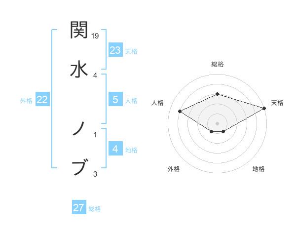 関水 ノブさんの総格は27画の3点!