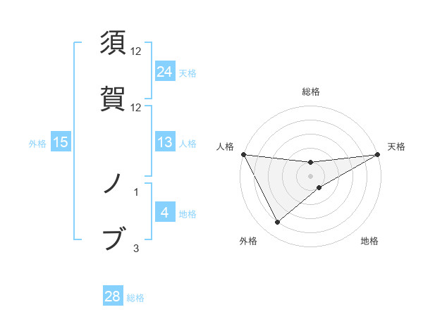 須賀 ノブさんを姓名の画数から五運を鑑定