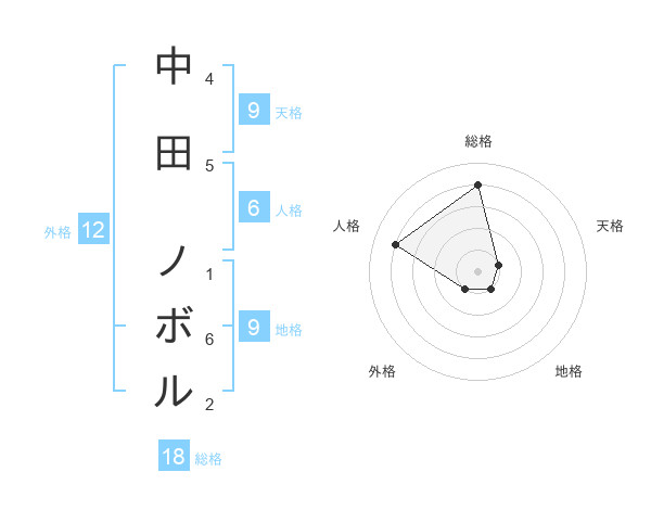 中田 ノボルさんを姓名の画数から五運を鑑定