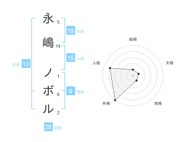 永嶋 ノボルさんを姓名の画数から五運を鑑定