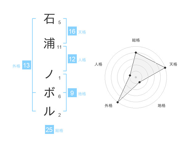 石浦 ノボルさんの外格は13画の5点!