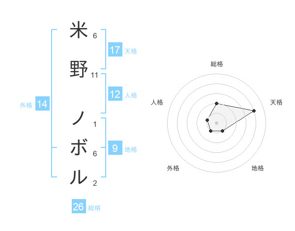 米野 ノボルさんの総格は26画の2点!