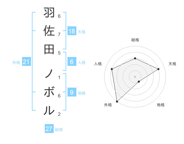 羽佐田 ノボルさんを姓名の画数から五運を鑑定