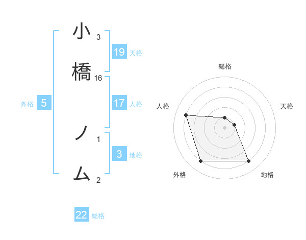 小橋 ノムさんを姓名の画数から五運を鑑定