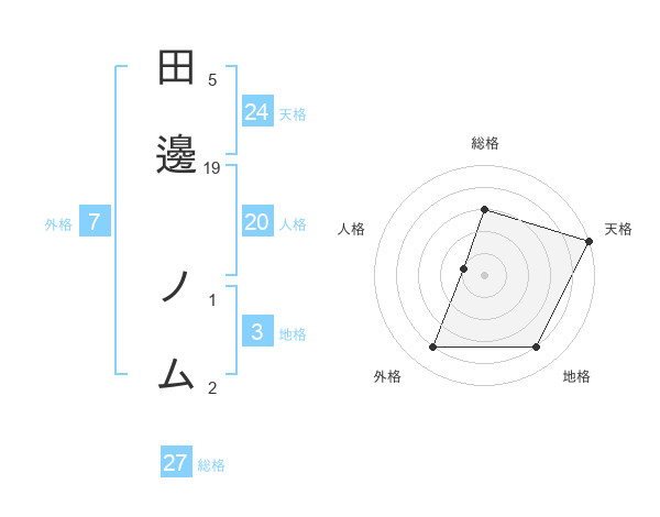 田邊 ノムさんを姓名の画数から五運を鑑定