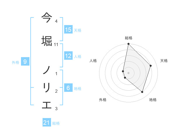 今堀 ノリエさんを姓名の画数から五運を鑑定