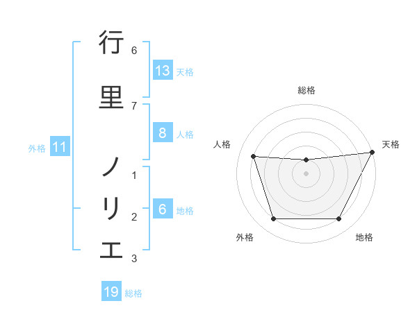 行里 ノリエさんを姓名の画数から五運を鑑定
