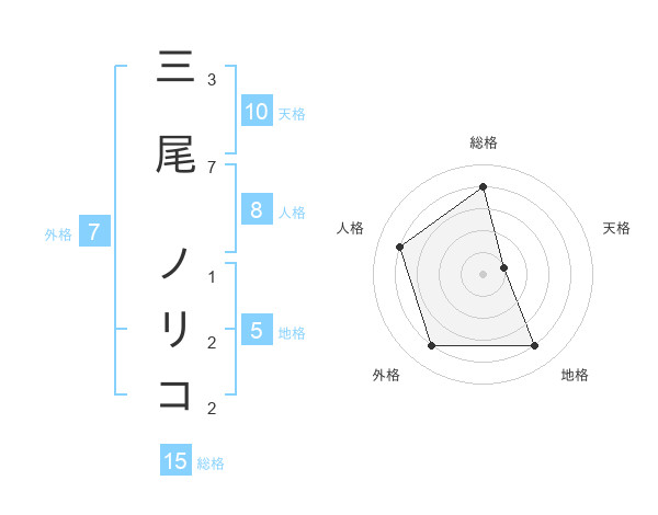 三尾 ノリコさんを姓名の画数から五運を鑑定