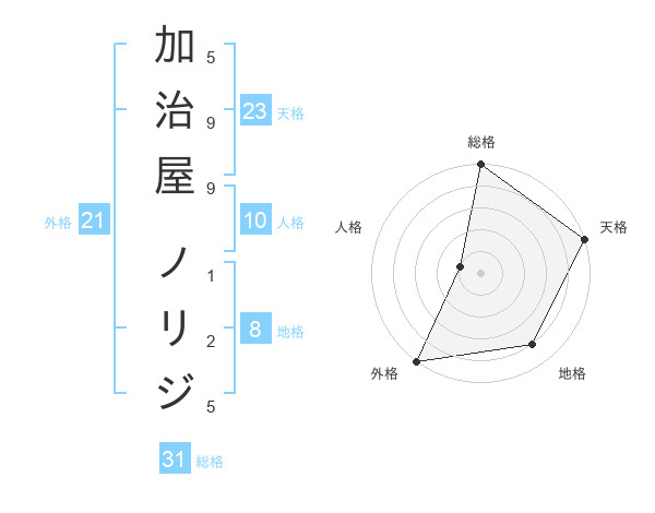 加治屋 ノリジさんの天格は23画の5点