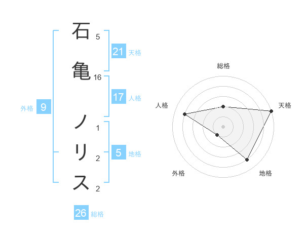 石亀 ノリスさんを姓名の画数から五運を鑑定